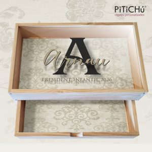 Caja Multiusos de madera con tapa transparente. Fallero y Texto PERSONALIZABLE