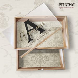 Caja Multiusos de madera con tapa transparente. Inicial y Texto PERSONALIZABLES
