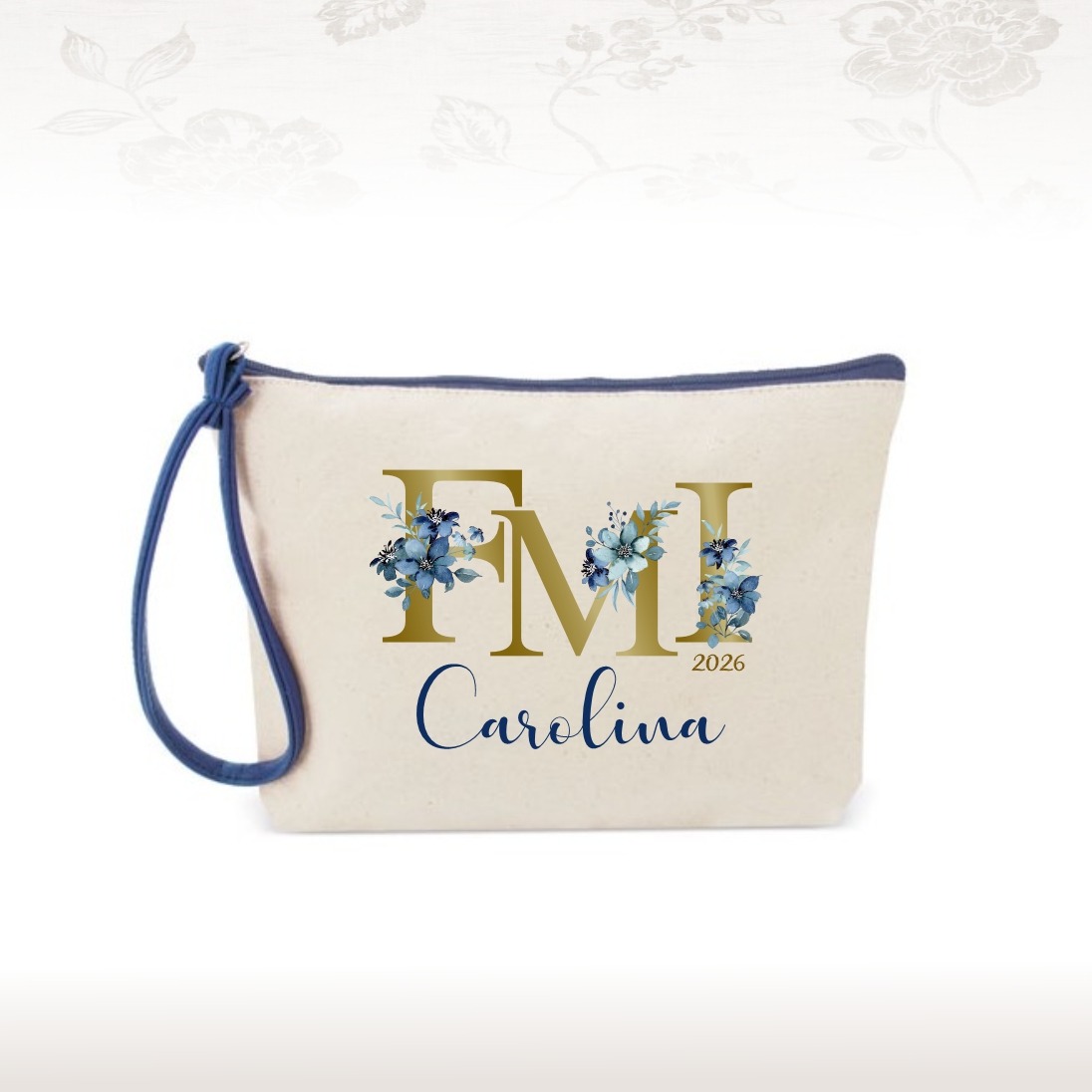 Neceser de Algodón 100% Natural para Fallera Mayor Infantil con FMI de la colección Azucena. Personalizable con el nombre y opcionalmente también el año.