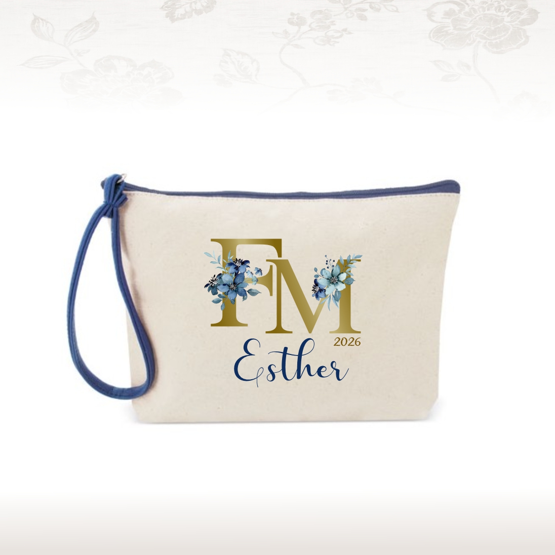 Neceser de nuestra colección Azucena para Falleras Mayores. Personalizable con tu nombre y año del cargo.